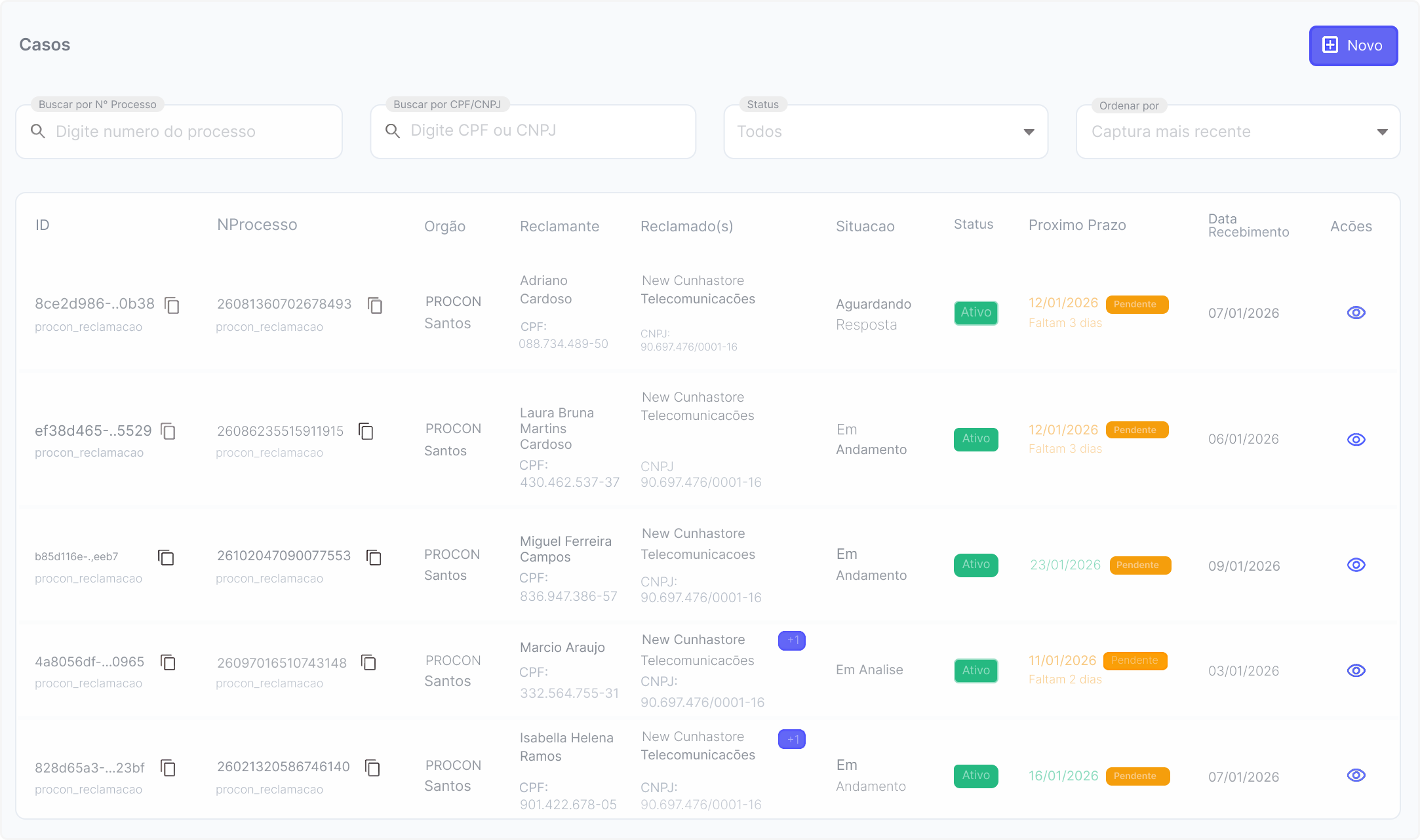 Integramos nos portais de intimações de órgãos reguladores para garantir que você receba todas as notificações