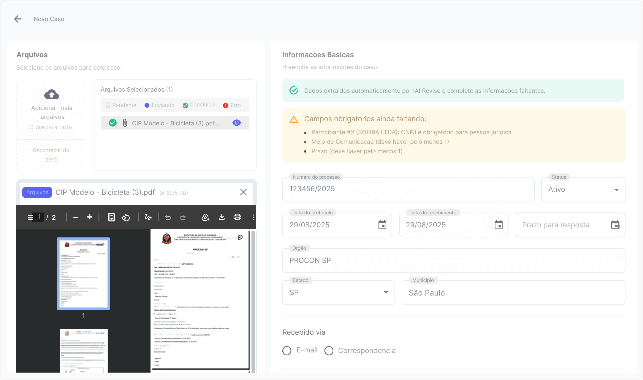 Revise, aprove e protocole suas defesas diretamente na plataforma, tudo em um só lugar